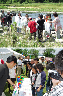 当日は「多摩川河川清掃」とフェスティバルに参加していた団体の「各ブースを子どもたちが取材する」シーンの撮影を行ないましたが、撮影だけでなく実際に清掃活動にも参加し、河原に落ちていたごみを拾うことで、子どもたち(大人の方も)にとっては環境問題を考えるきっかけになったようです。