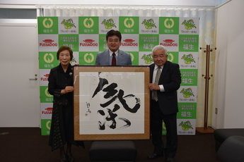 4月13日(金曜日) 書「気」「和楽」「偕楽」寄贈感謝状贈呈式(応接室)